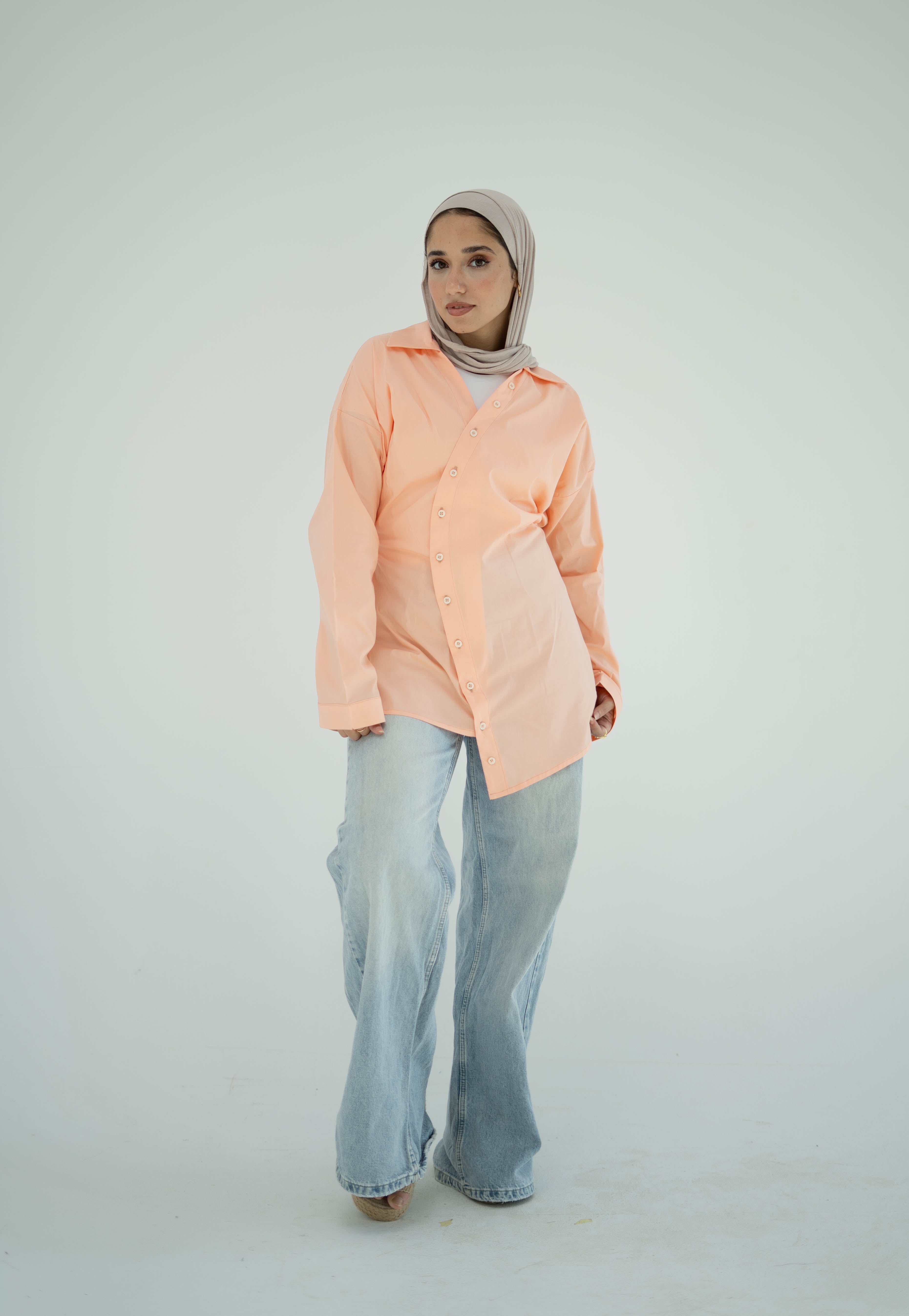 Asymmetric Poplin Shirt-Blush Pink