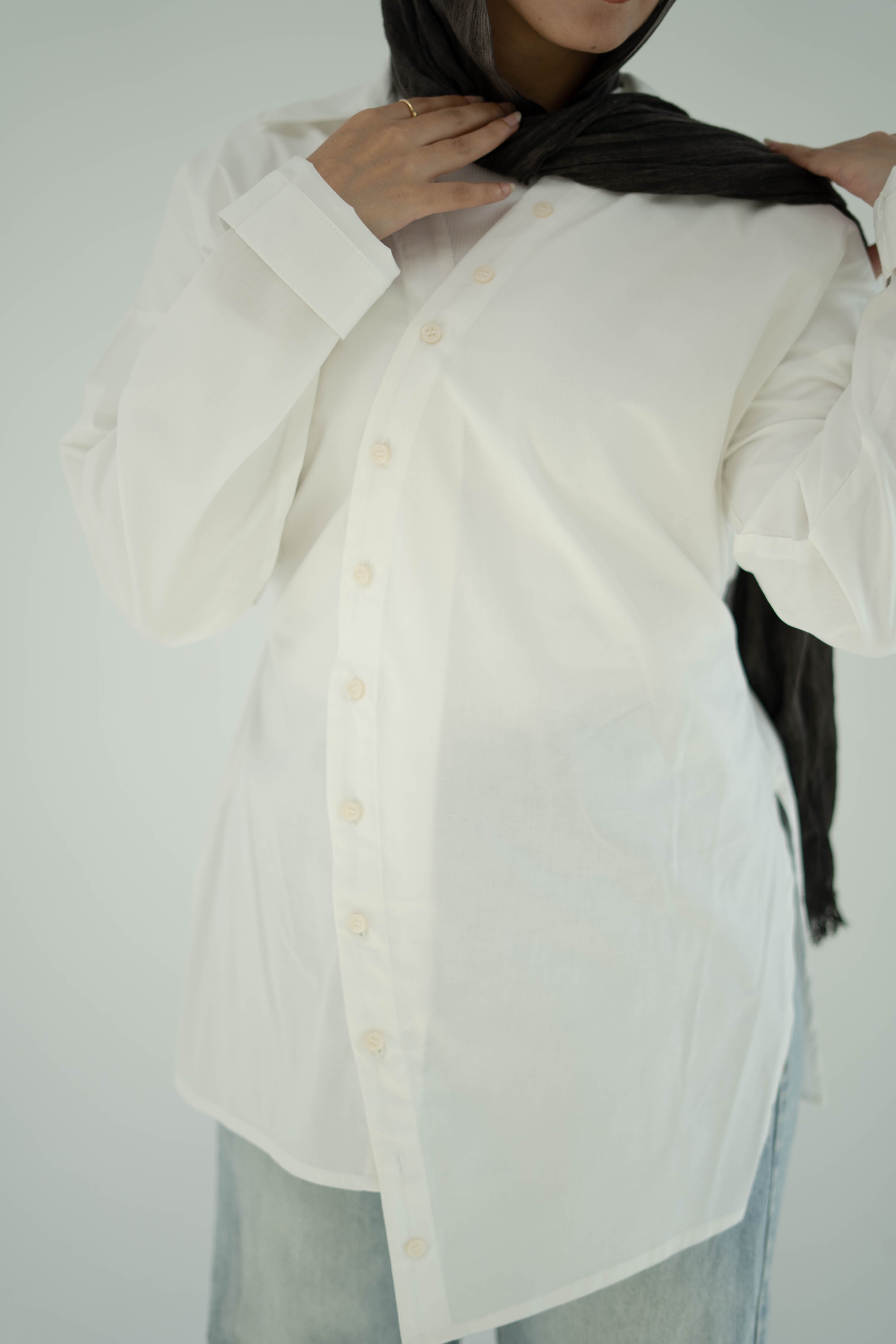 A bold twist on the classic button-down. This asymmetric poplin shirt features a unique diagonal button closure that adds an unexpected edge to your look. Cut from crisp, breathable poplin, it’s designed with adjustable side ties to define the waist and create a flattering silhouette. Perfect for effortless styling — wear it with jeans for a relaxed vibe or dress it up for a contemporary statement.