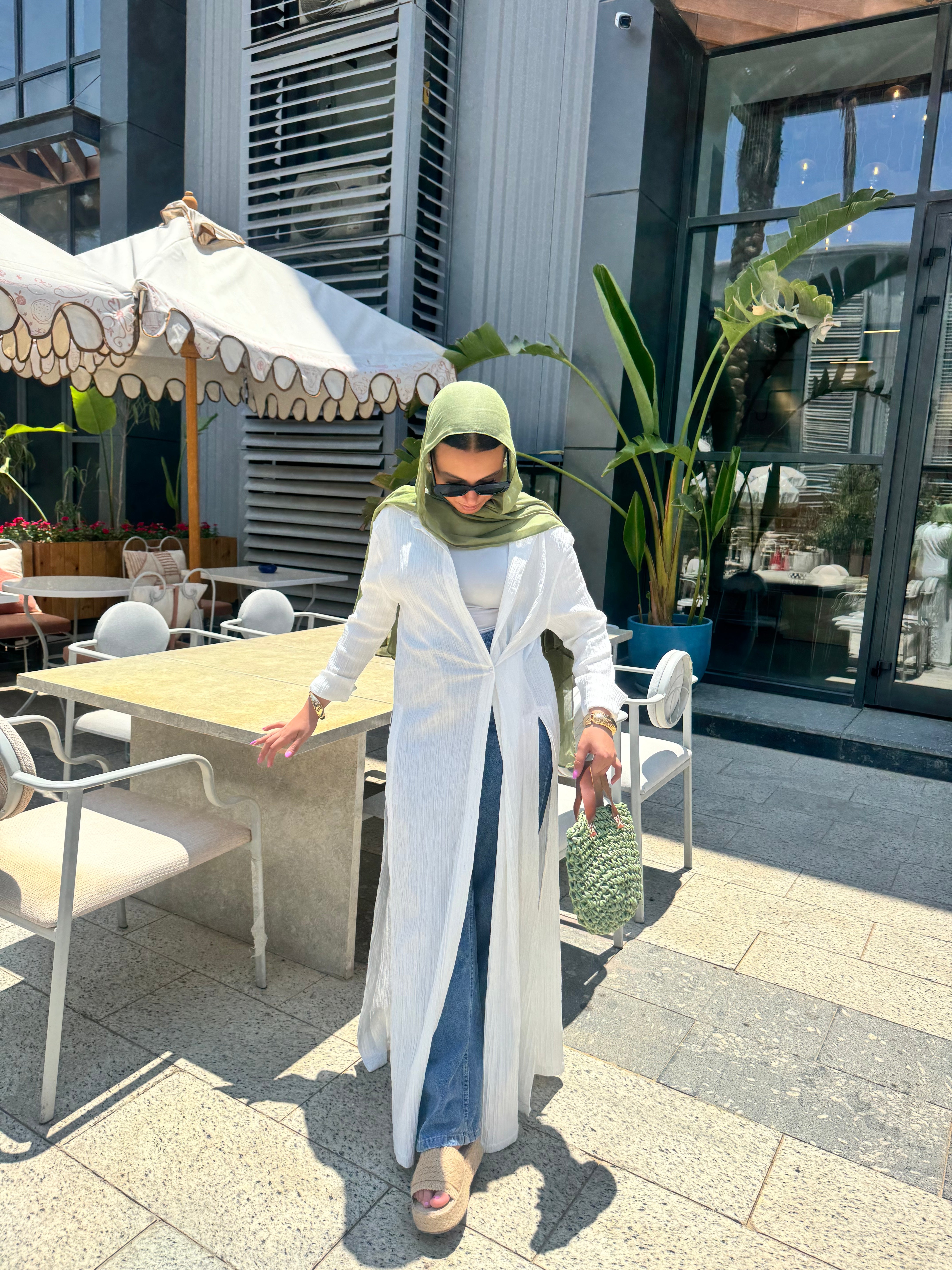 Button details for secure wrapping with light breathable material during summer days.